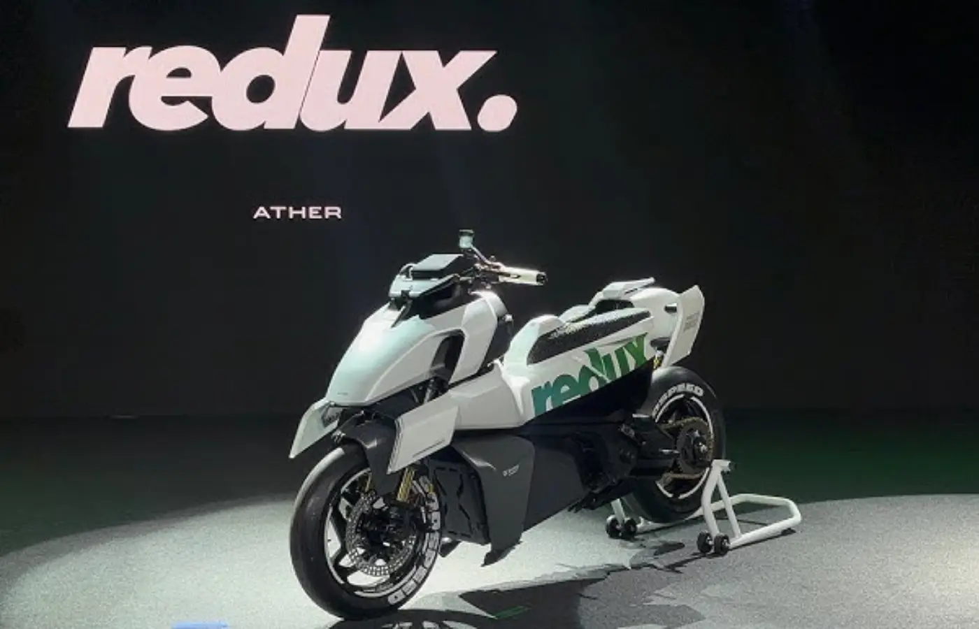 Apart from showcasing production models, Ather also revealed its latest Redux, which is an innovative concept by the company defined as a “Moto Scooter”. This radical concept is constructed on a lightweight aluminium frame featuring a 3D-printed lattish mesh seat and body panels designed from AmplyTex.
